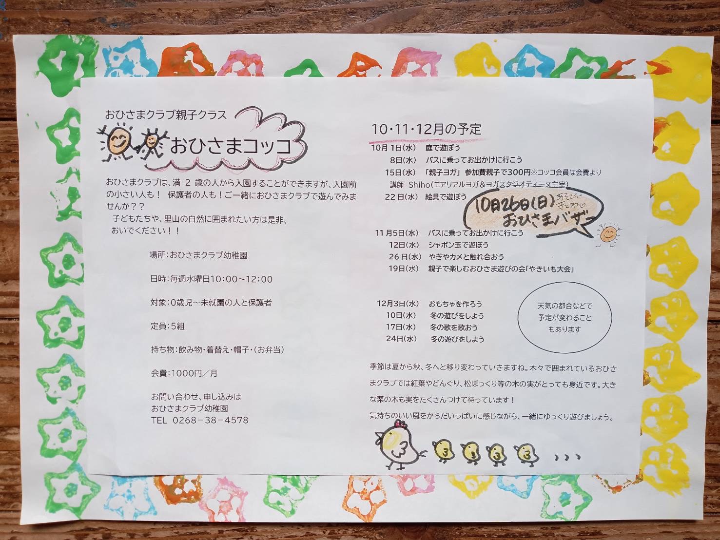 おひさまコッコ 10.11.12月のお知らせ