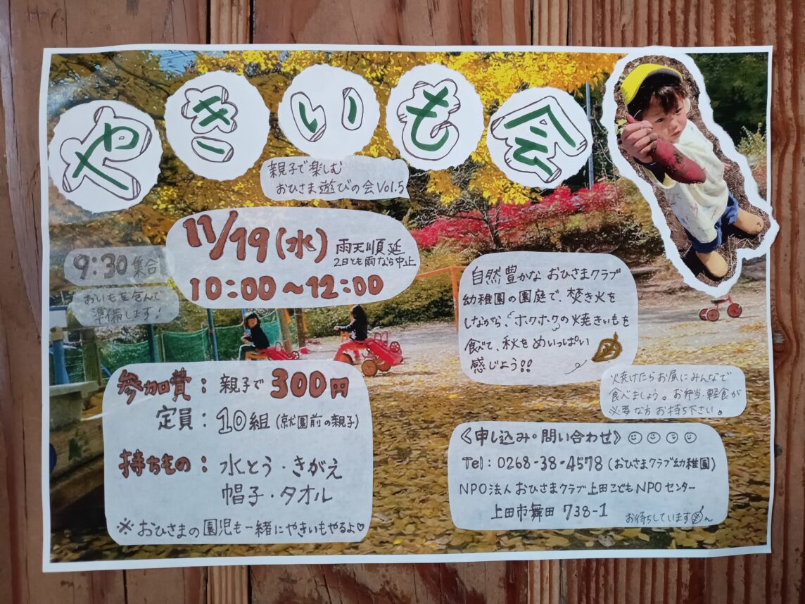 【お知らせ】第5回おひさま遊びの会 やきいも会(11/19(水)雨天順延)